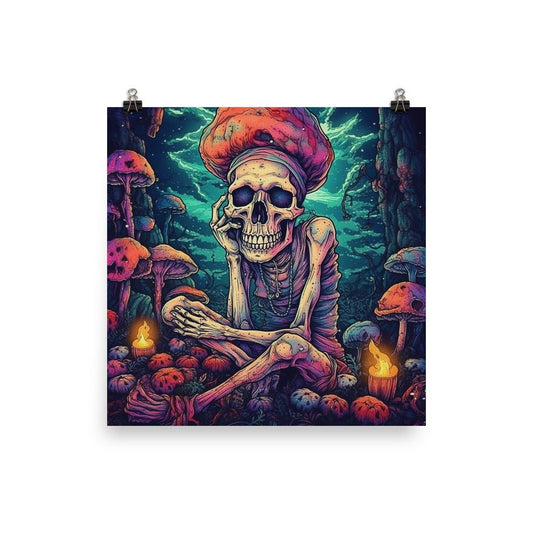Thought-Provoking Skeleton & Mushroom Poster